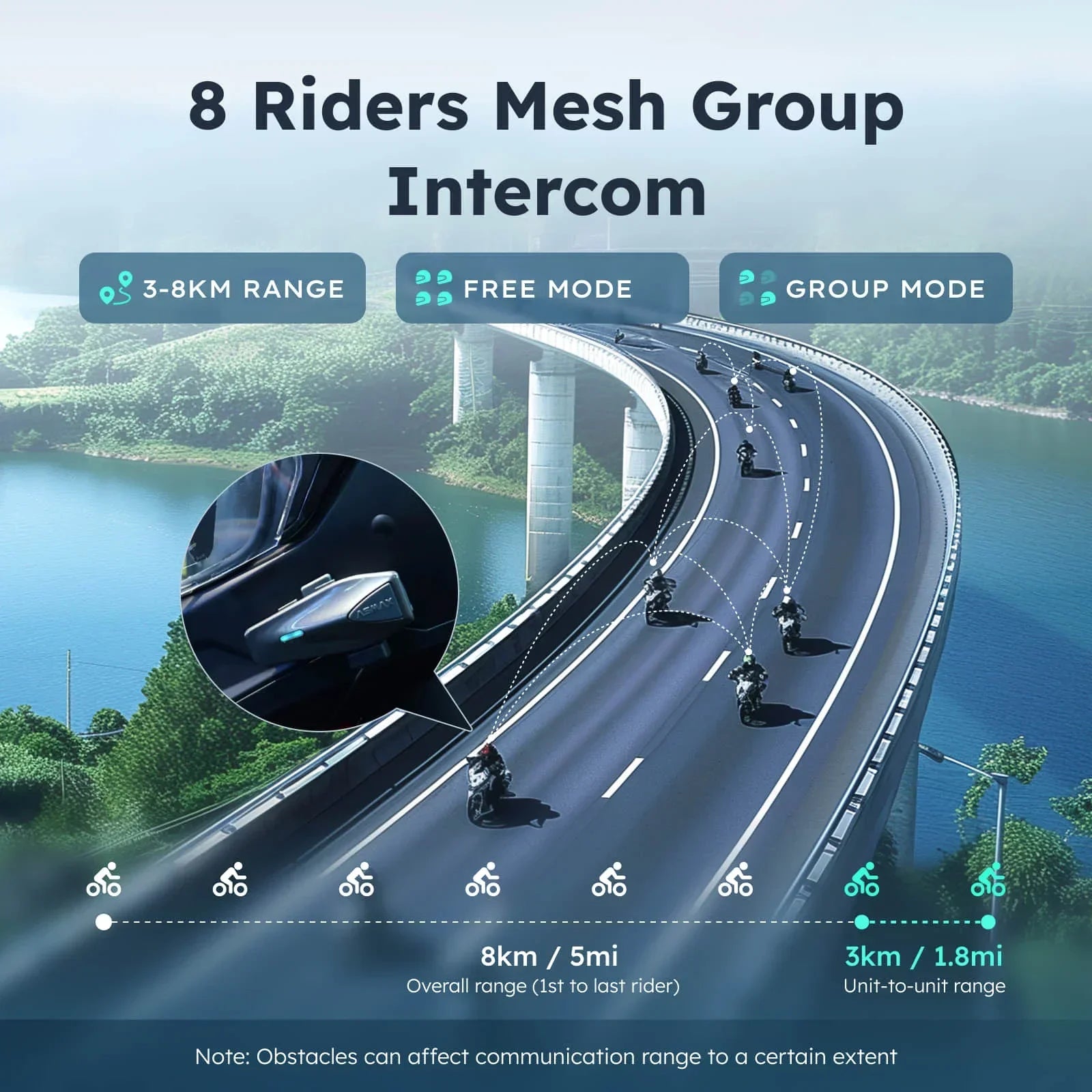 The S1 Bluetooth Motorcycle Intercom lets up to 8 riders communicate clearly in real time — perfect for group rides, touring, or daily commutes. With ENC noise reduction, Bluetooth 5.4, and IPX7 waterproof durability, you’ll enjoy crystal-clear voice communication and full control while on the road.